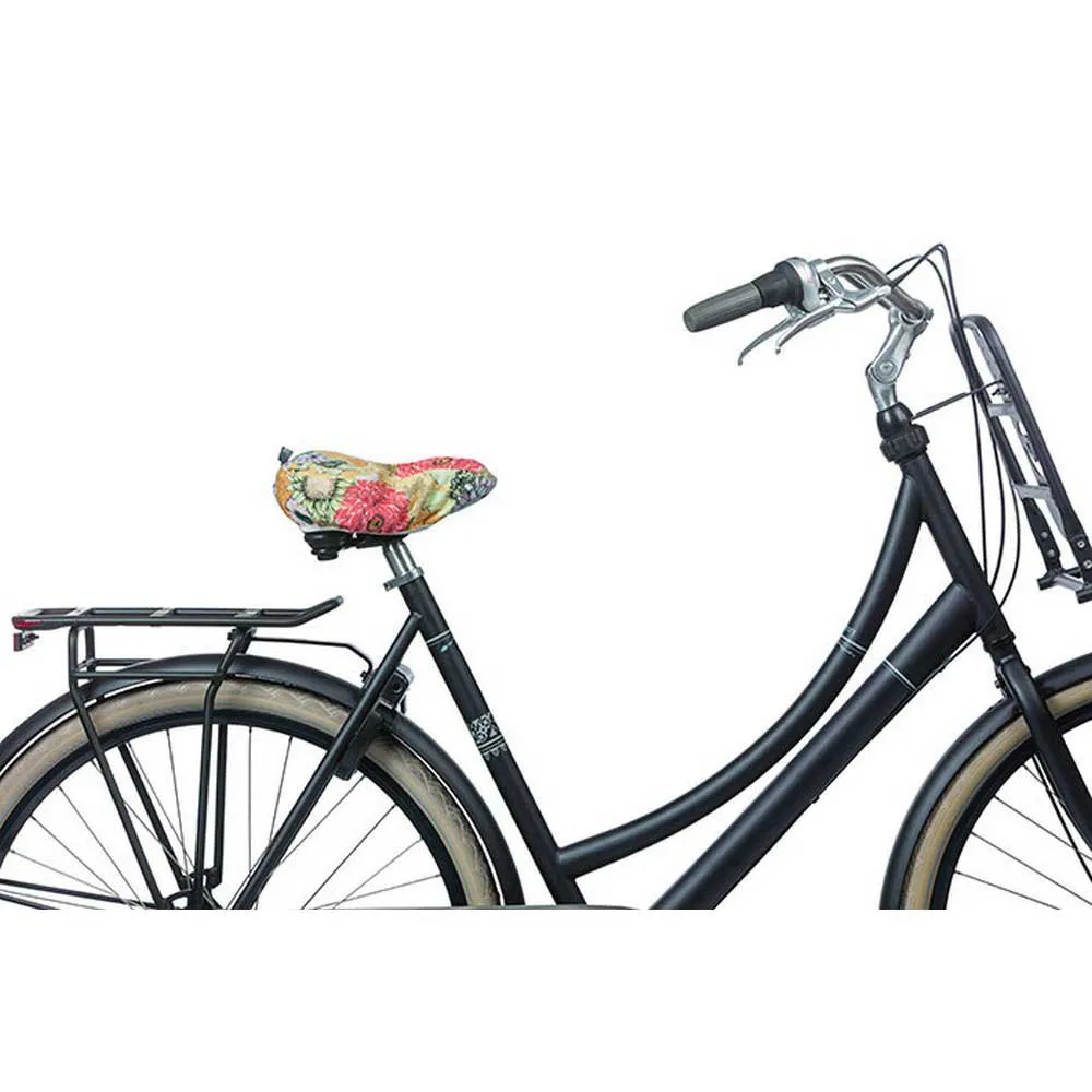 The Basil Bloom Field saddle cover is a trendy saddle cover for a women’s bicycle. It is available in yellow.