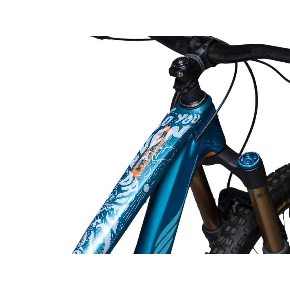 This is fluor Victor Brousseaud is one of the best illustrators out there and a mountain bike fan. When I have reached out to us to design our next frame protector we couldn´t say yes fast enough. The final product is what you guys can buy now, and transform your bike into a piece of ART. Made with the same top quality as all our frame protectors.