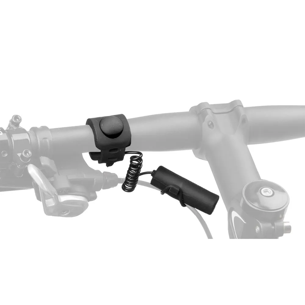 Electric bicycle bell, black housing, with clamp for handlebar, with battery case, M-Wave-blisterpacking