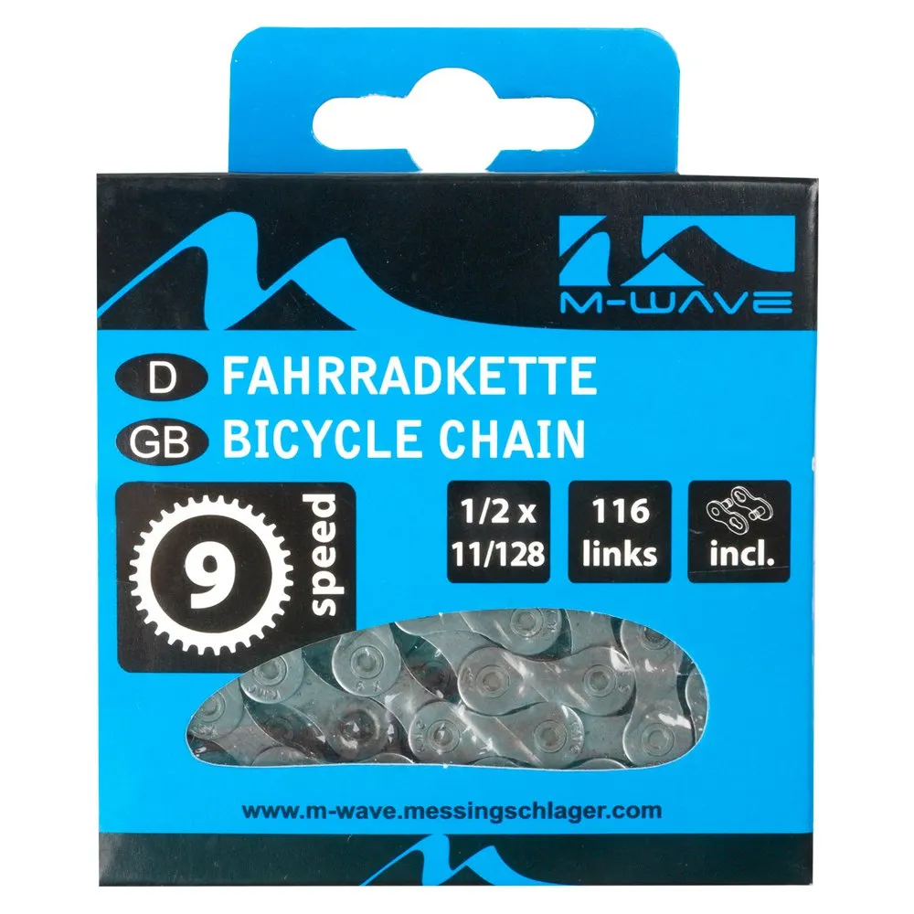 Bicycle chain M-WAVE, 1/2×11/128, 116 links, grey, 9-speed, with connecting link, box