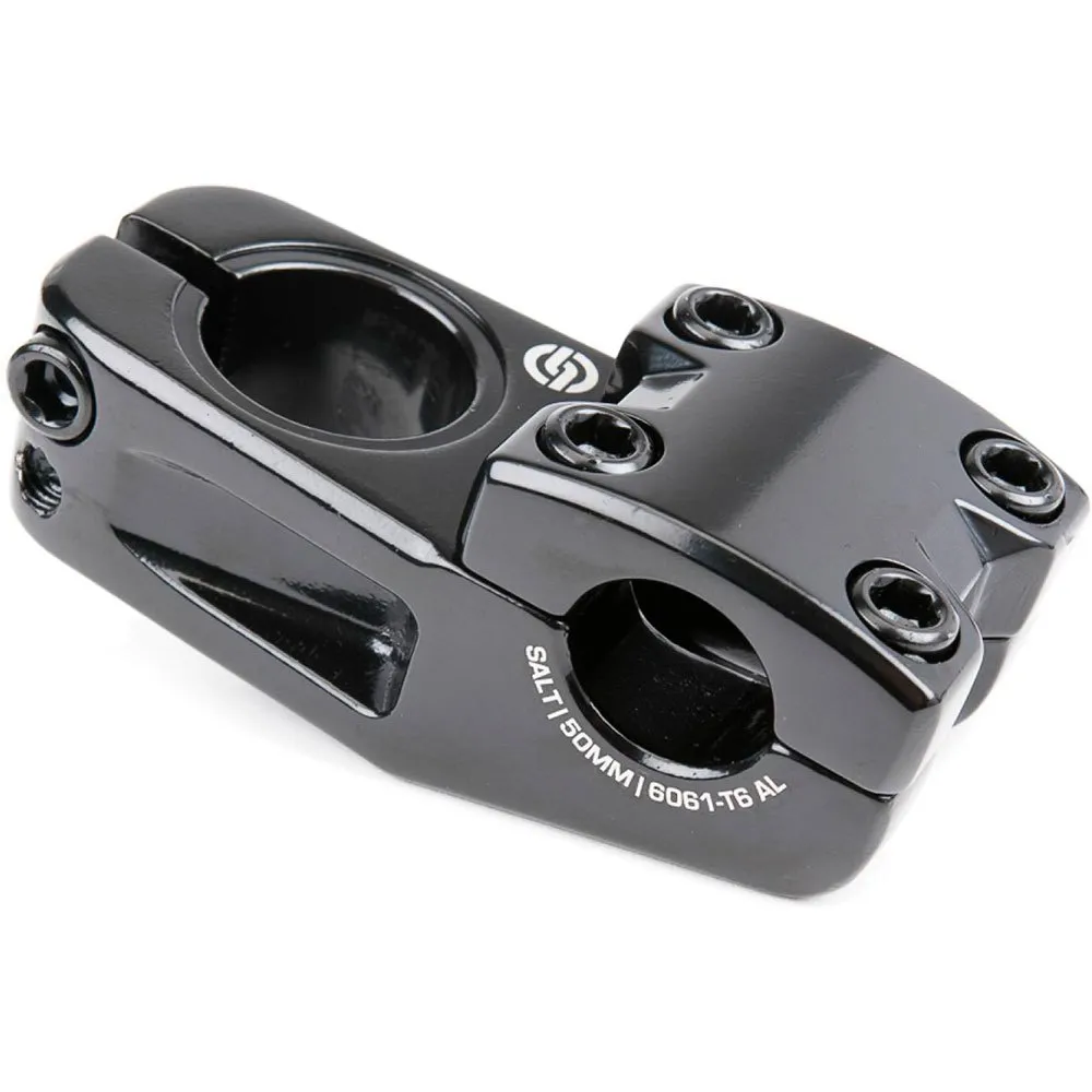 high rise, top loading stem design, STC (Shark Tooth Clamping) inside the stem to help grip the bars, 48mm wide faceplate with central bore for reduced weight, unique side pocket detail.