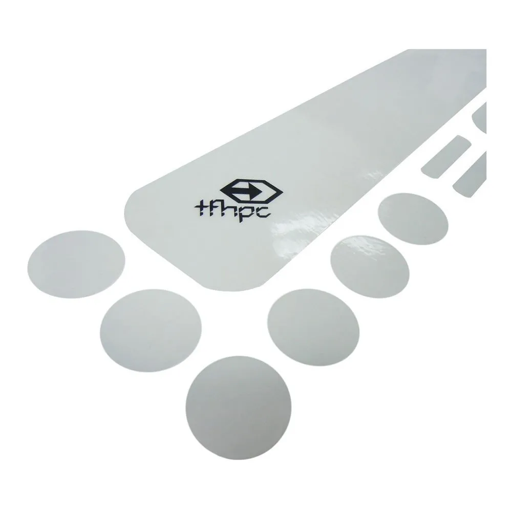 Thick and transparent adhesive pads for protection of your bike´s paint. Extra durable. Rugged water resistant and flexible pads, suitable for every condition. Kit includes: Downtube Protection, Stay Guard Protection, and a Set of Pads of different sizes. PVC material. Transparent Sticker.